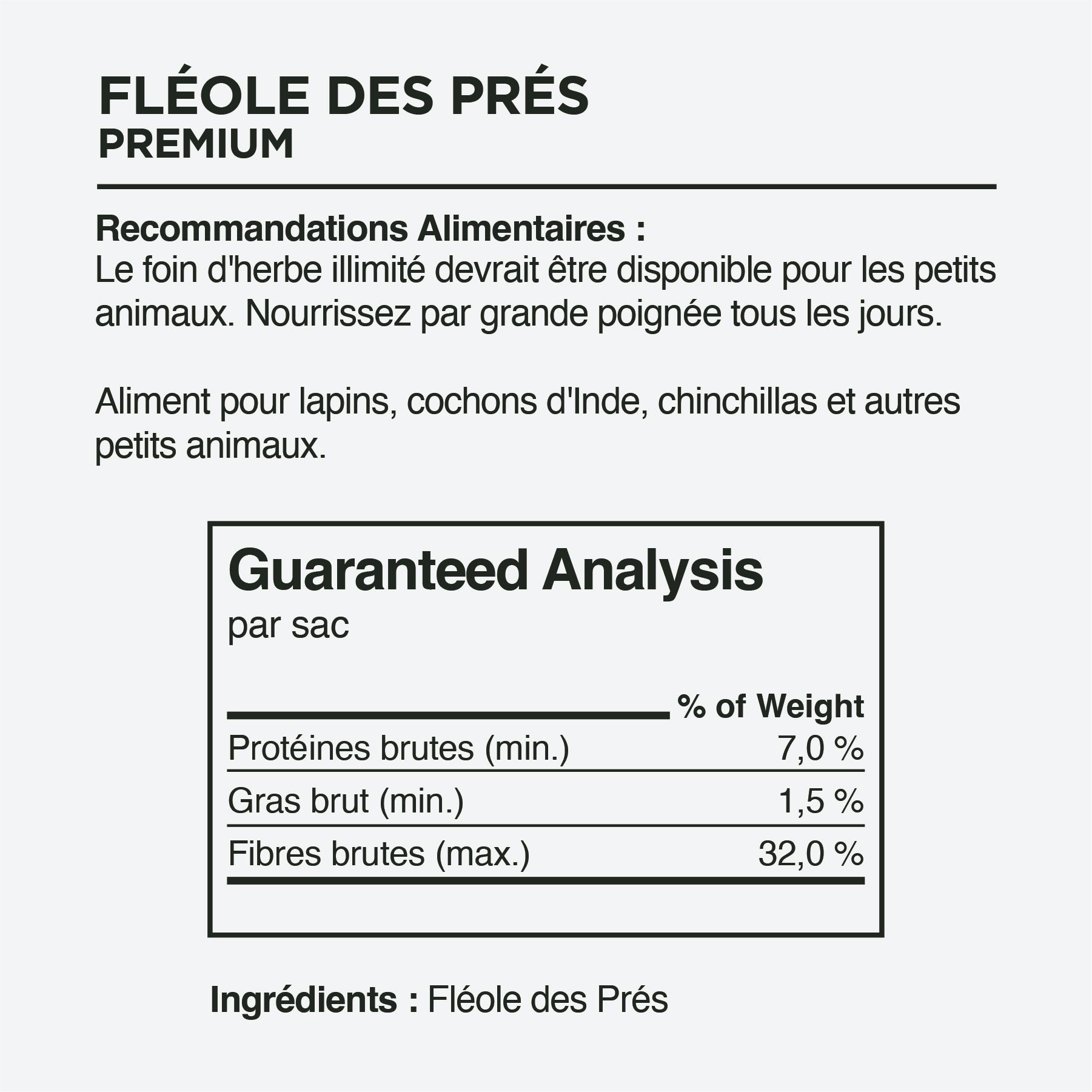 Cultivé et récolté avec fierté dans les champs canadiens, le foin de fléole des prés de qualité supérieure de Stoter Farm est séché naturellement au soleil et 100 % naturel. Avec ses tiges feuillues, ses épis et son croquant agréable, il regorge de fibres et de nutriments essentiels à la bonne digestion et à l'hygiène dentaire des petits animaux. Idéal pour les lapins, les cobayes, les chinchillas et bien d'autres, notre foin est expédié frais dans un emballage respirant qui préserve sa saveur et son arôme. Avec notre garantie de satisfaction à 100 %, c'est un foin de confiance.