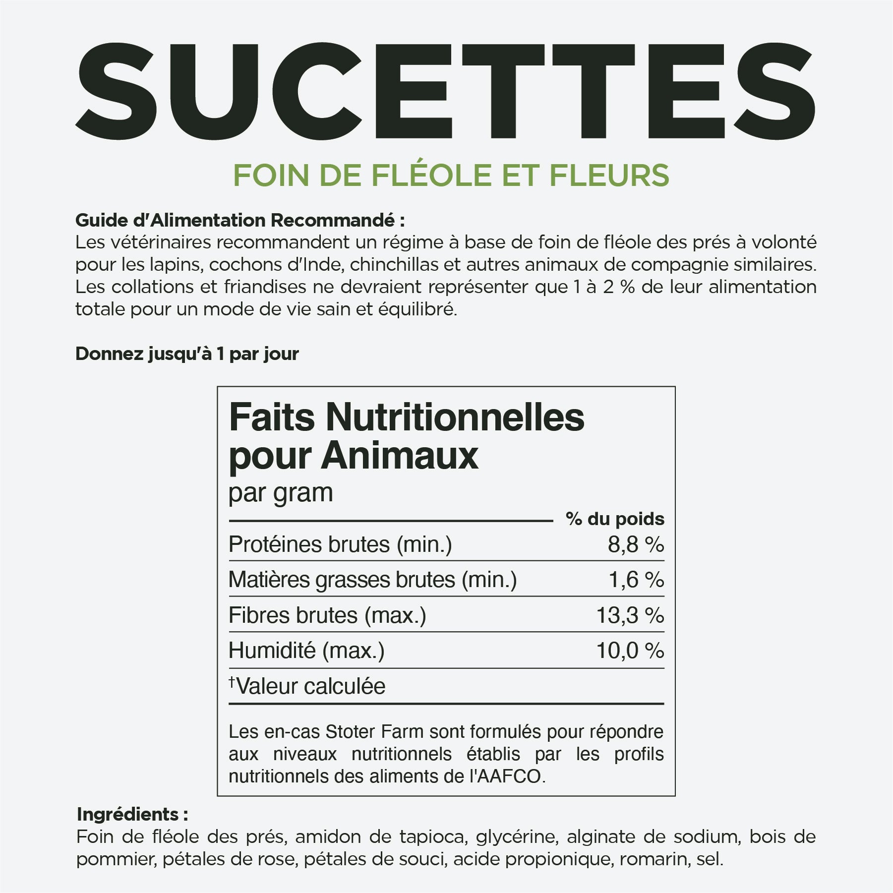 - Timothy hay, dried marigold and rose petals, fibre-rich.
