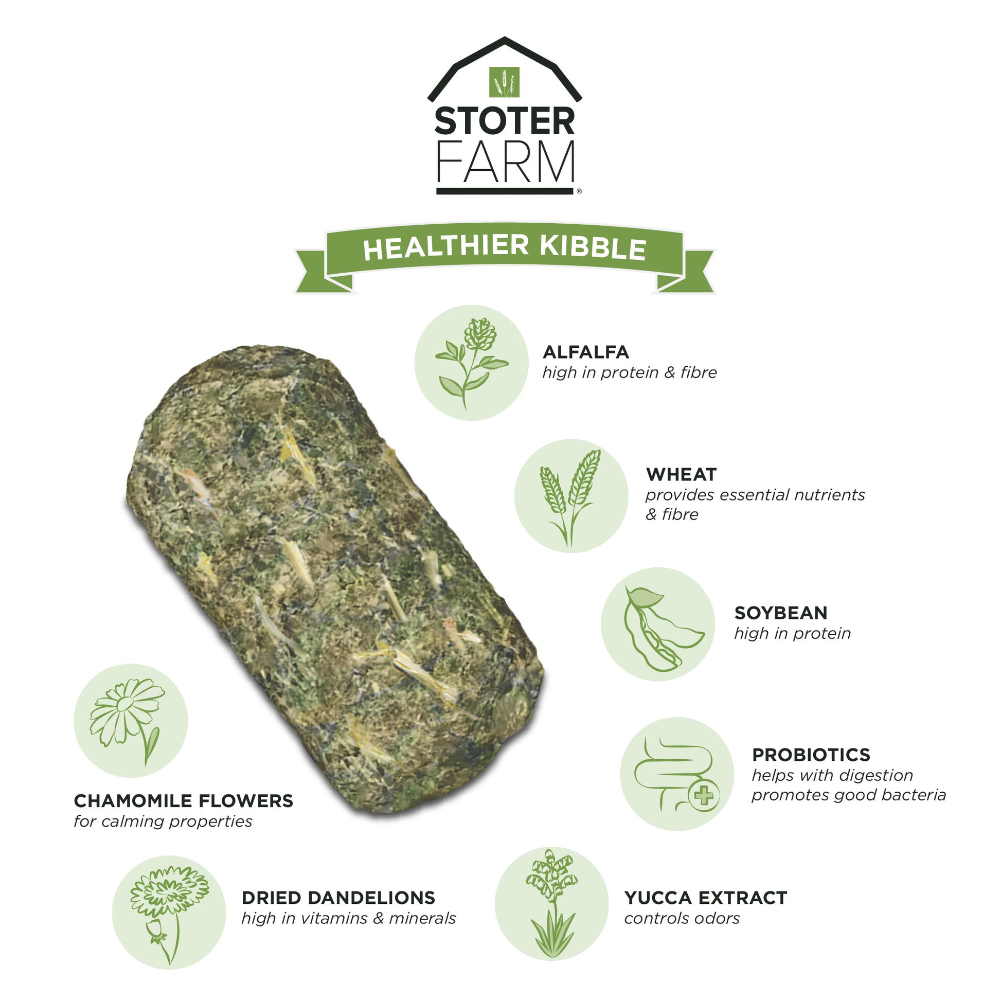 Stoter Farm’s Early Life Rabbit Food is a premium extruded kibble designed to support young rabbits' growth and wellbeing. With a crunchy texture that naturally helps clean teeth, this nutrient-rich formula includes prebiotics, dried dandelions, and chamomile for digestive and emotional health. Yucca extract helps minimize odors, while every bite delivers essential vitamins and minerals. Compared to pelleted food, our extruded kibble offers superior quality your rabbit will love and benefit from.