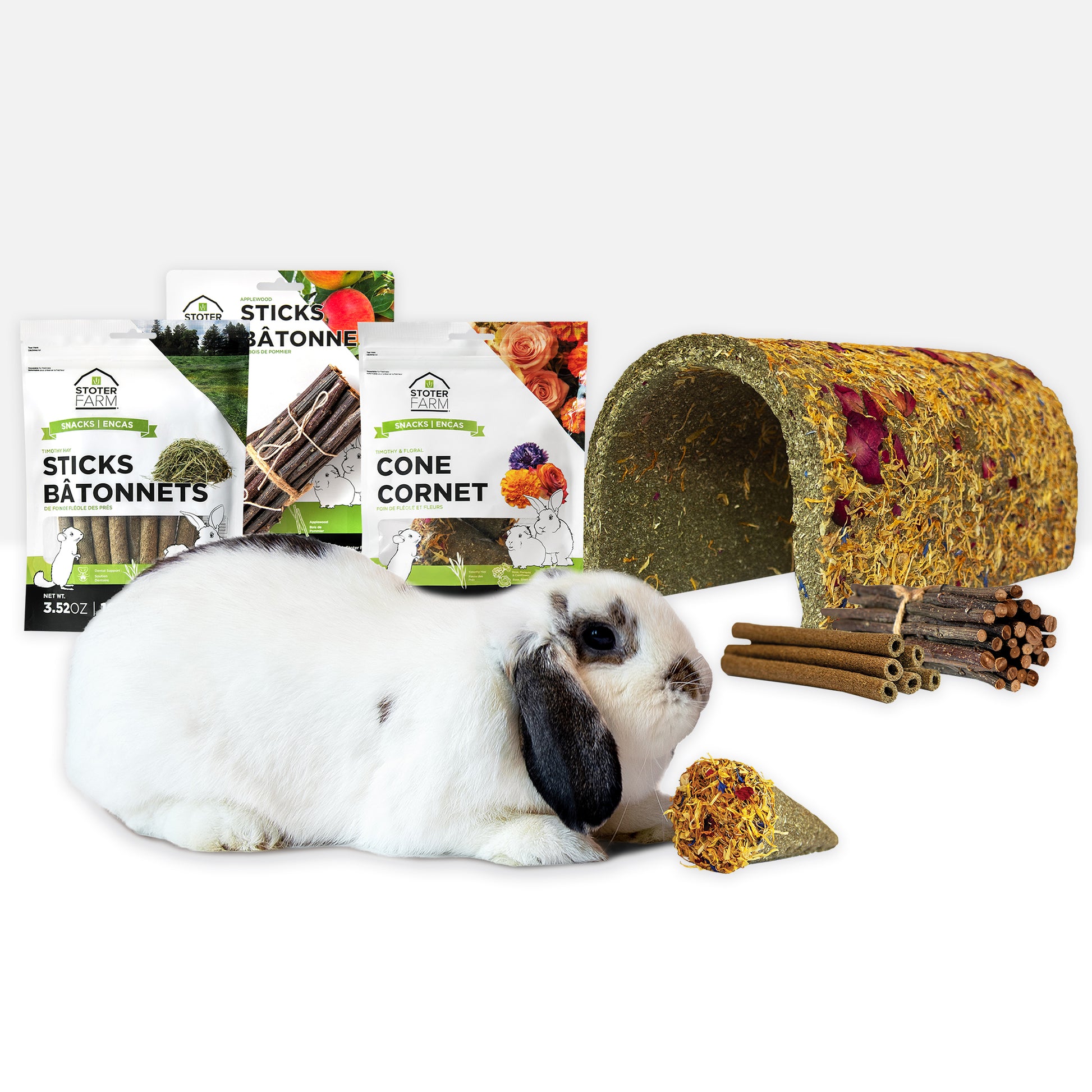 Keep your small pets entertained and healthy with the Stoter Farm Snack Bundle. This set features applewood and Timothy sticks for satisfying chewing, along with Timothy & Floral cones and a Timothy flower tunnel to encourage playful exploration and foraging. Perfect for rabbits, guinea pigs, and other small animals, this bundle combines natural treats with engaging enrichment, supporting dental health, mental stimulation, and hours of fun for your furry companions.